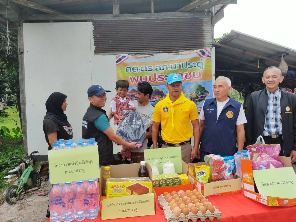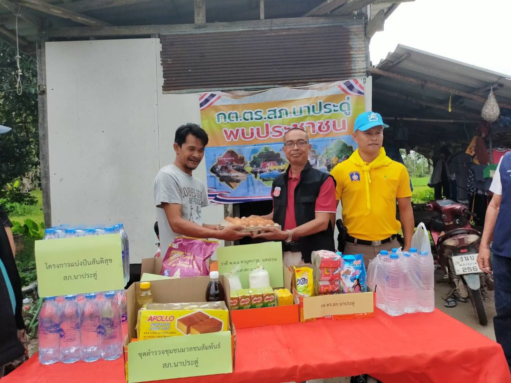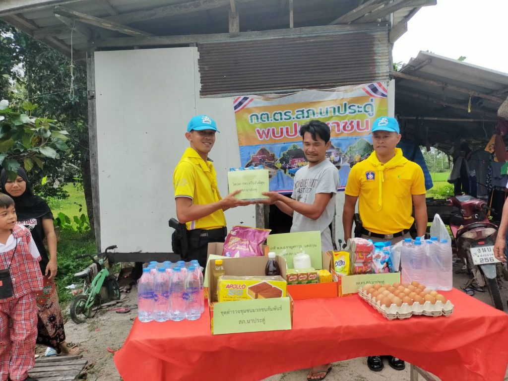 สถานีตำรวจภูธรนาประดู่ ตำรวจมวลชนสัมพันธ์ ร่วมกิจกรรมจิตอาสาช่วยเหลือผู้ยากไร้ “ครอบครัวนักเรียนโรงเรียนบ้านยางแดง” มอบเครื่องอุปโภคบริโภค