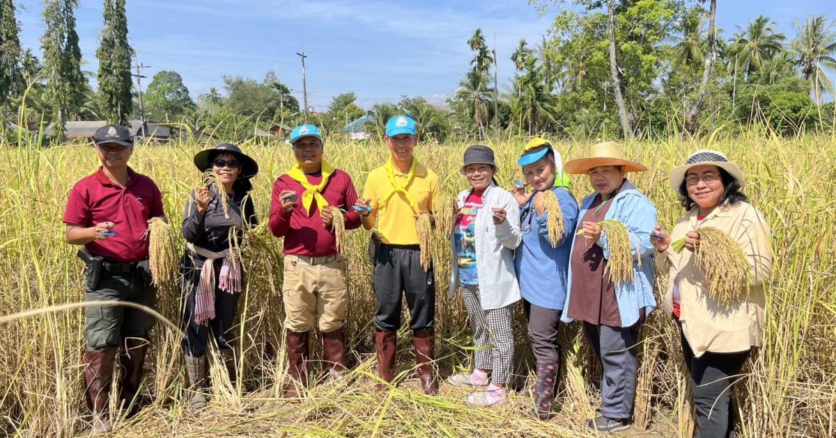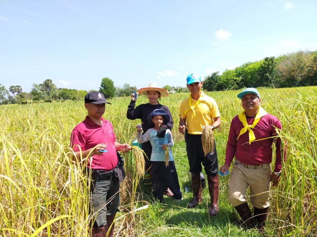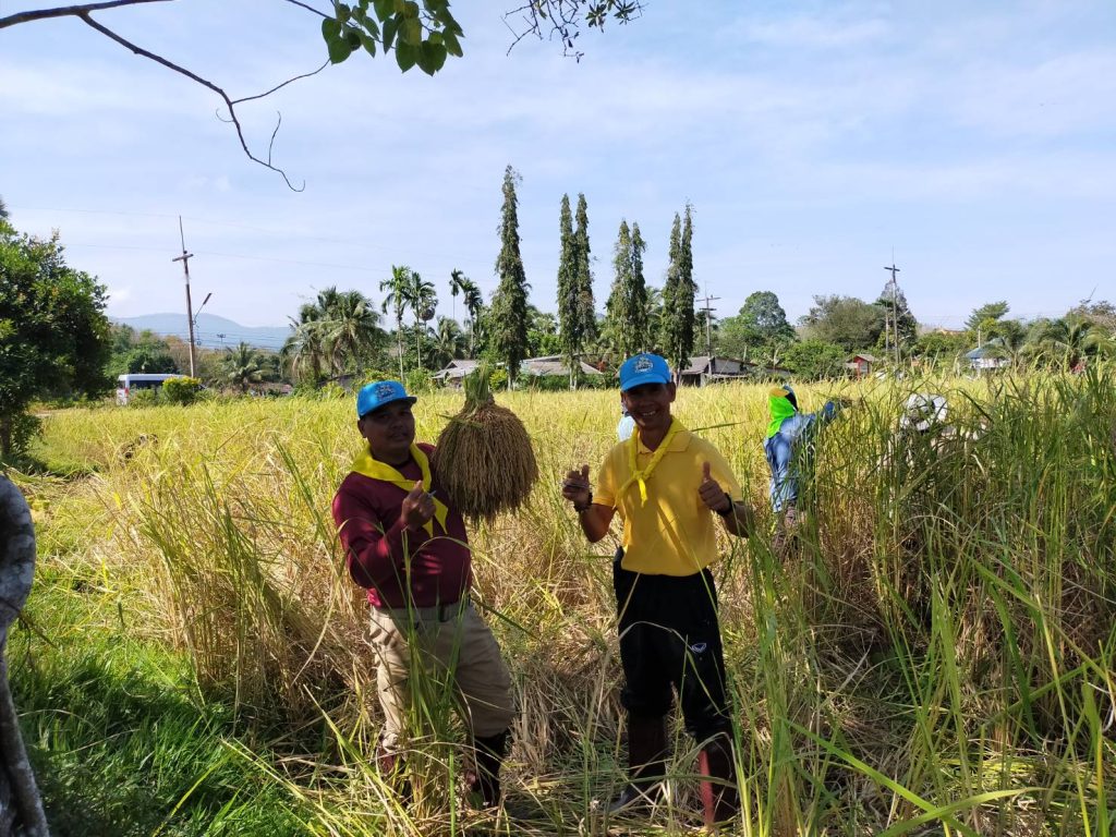 สภ.นาประดู่ พร้อมข้าราชการตำรวจจิตอาสา ร่วมกิจกรรมสืบสานประเพณีลงแขกเกี่ยวข้าว ณ แปลงนาสาธิตโรงเรียนวัดนิคมสถิตย์