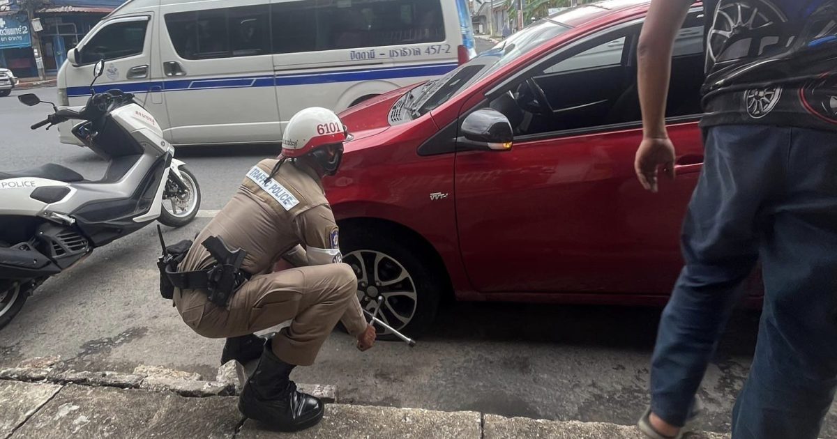 จราจร สภ.นาประดู่ ให้การช่วยเหลือประชาชน รถยางรั่ว บริเวณแยกไฟแดงเทศบาลตำบลนาประดู่ จนสามารถเดินทางต่อได้