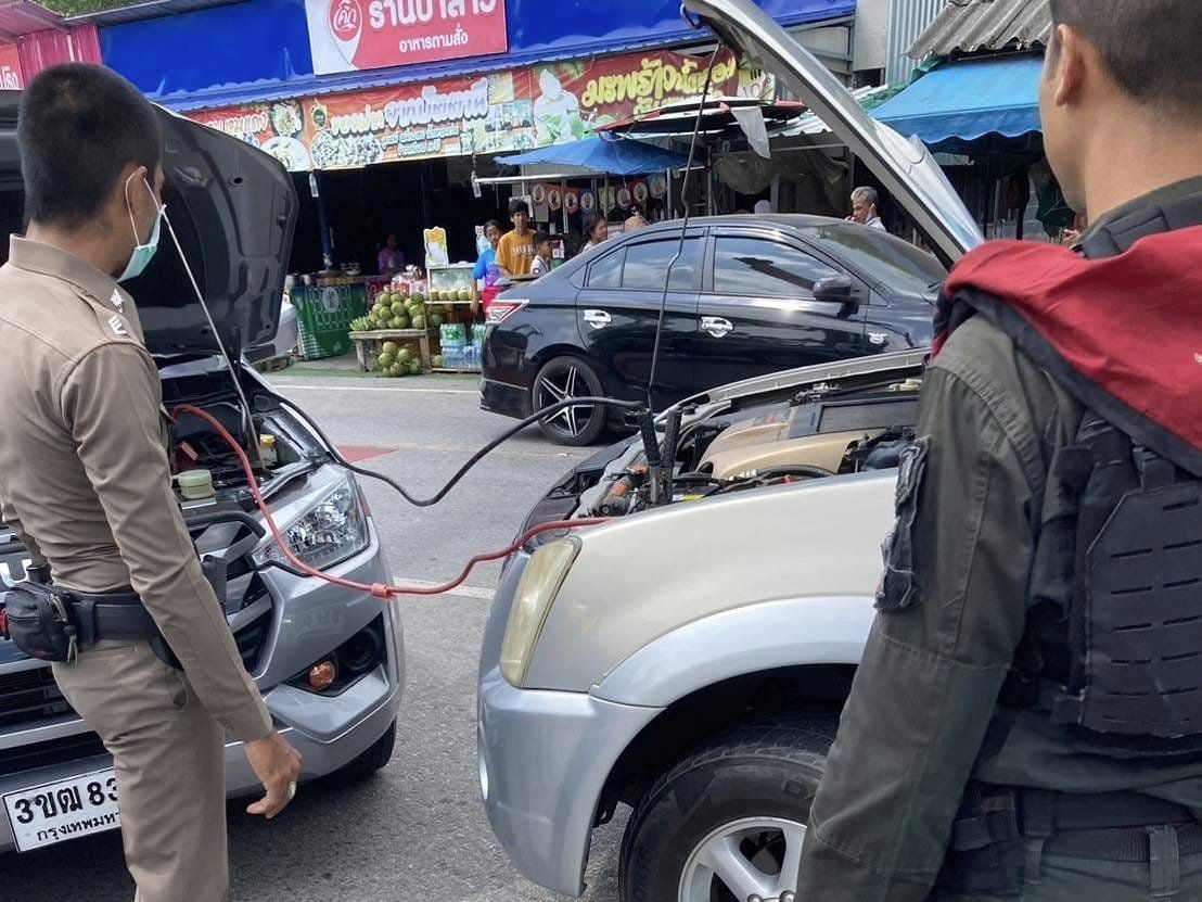สภ.นาประดู่ ให้การช่วยเหลือประชาชน รถแบตเตอรี่หมด